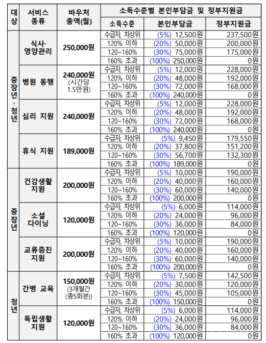 돌봄이 필요한 중장년(질병, 부상, 고립 등), 가족 돌봄 청년과 같이 일상생활에 도움이