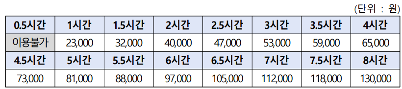 30분만 이용은 불가하며, 1시간 이상부터는 30분 단위로 이용이 가능합니다.