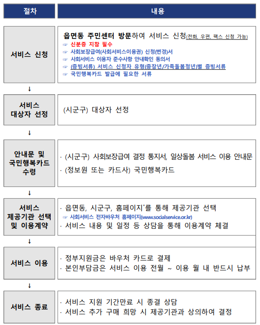 지금부터 일상 돌봄 서비스에 대한 신청자격, 서비스 내용, 이용절차, 신청방법,