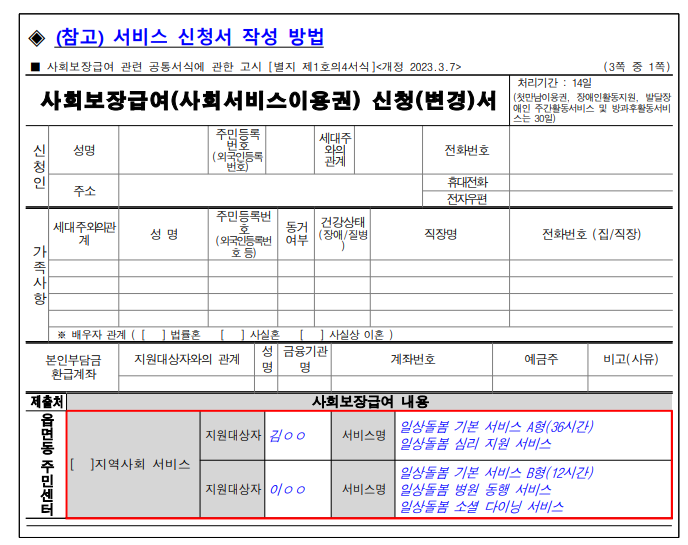 서비스 이용자 주소지 읍면동 주민센터 방문