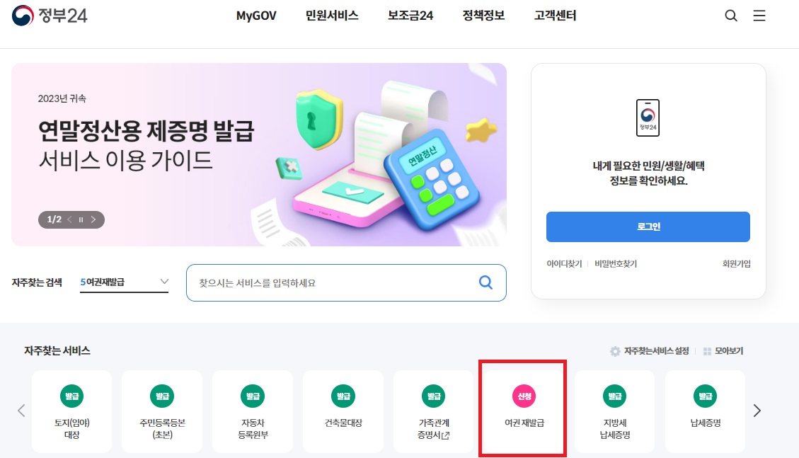 ② 여권 재발급을 클릭합니다.