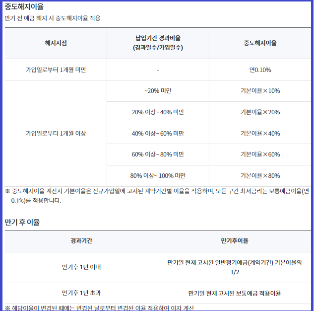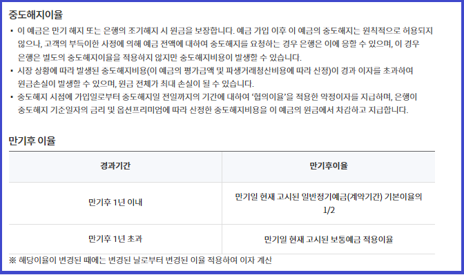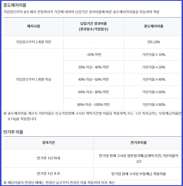 √ 중도해지이율 및 만기 후 이율은 다음과 같습니다.
