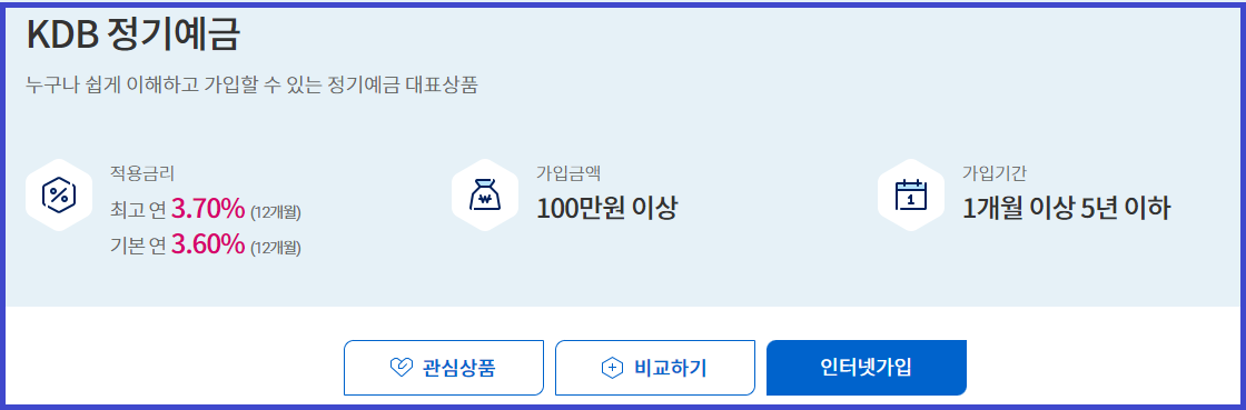 √ KDB 정기예금 금리는 최고 연 3.70%이며,
