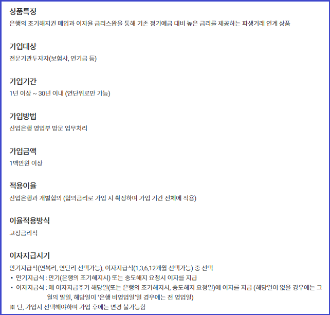 √ 적용이율은 산업은행과 개별협의(협의 금리로 가입 시 확정하며 가입 기간 전체에 적용)