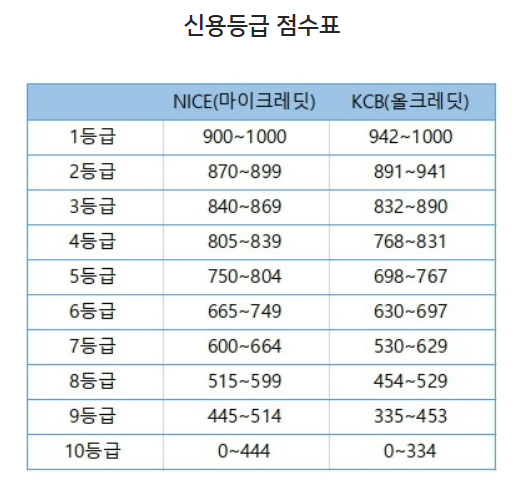 개인 신용점수 (NICE, KCB 점수표 및 평가방법)