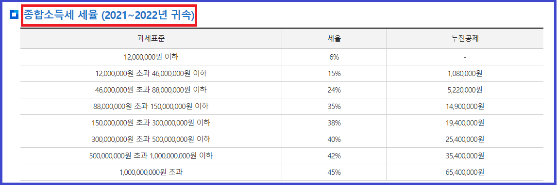 √ 2021 ~ 2022년도 귀속분 세율입니다.