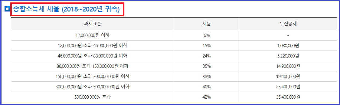 √ 2018 ~ 2020년도 귀속분 세율입니다.