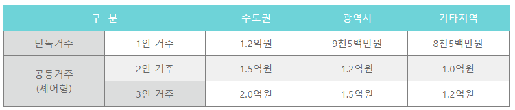 (단, 전세금은 단독 거주자는 호당 지원한도액의 150% 이내, 공동거주자는