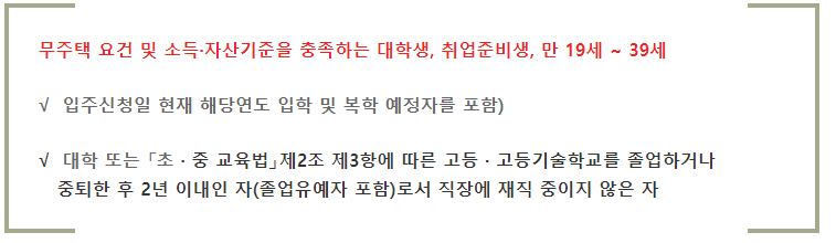√ 본인 월평균 소득 100% 이하이고, 행복주택 청년 자산 기준을 충족하는 자