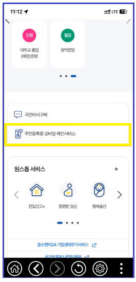 3. 화면 하단 주민등록 모바일 확인 서비스를 클릭합니다.