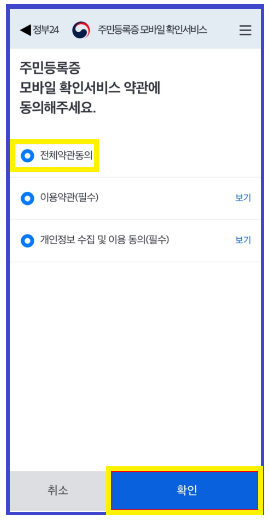 5. 다음 동의 체크 후, 확인을 클릭합니다.