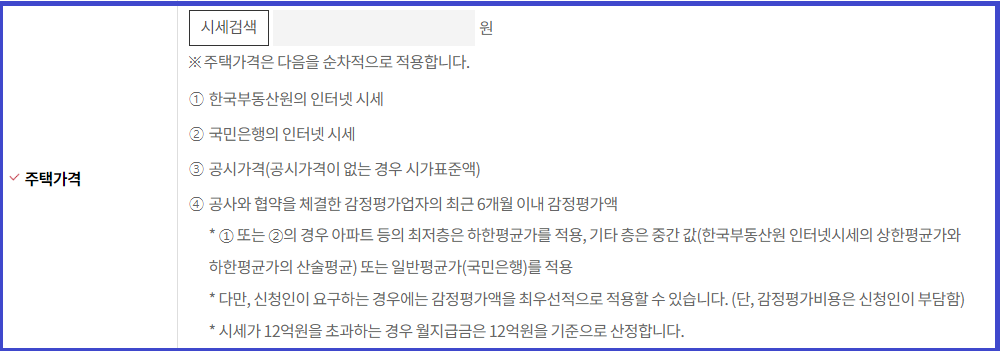 기존 주택 공시가격 등 보다 낮거나 같아야 합니다.