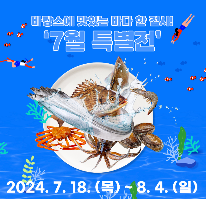 2024년 7. 18(목) ~ 8. 4(일)까지 특별전을 통해 수산물을 저렴하게